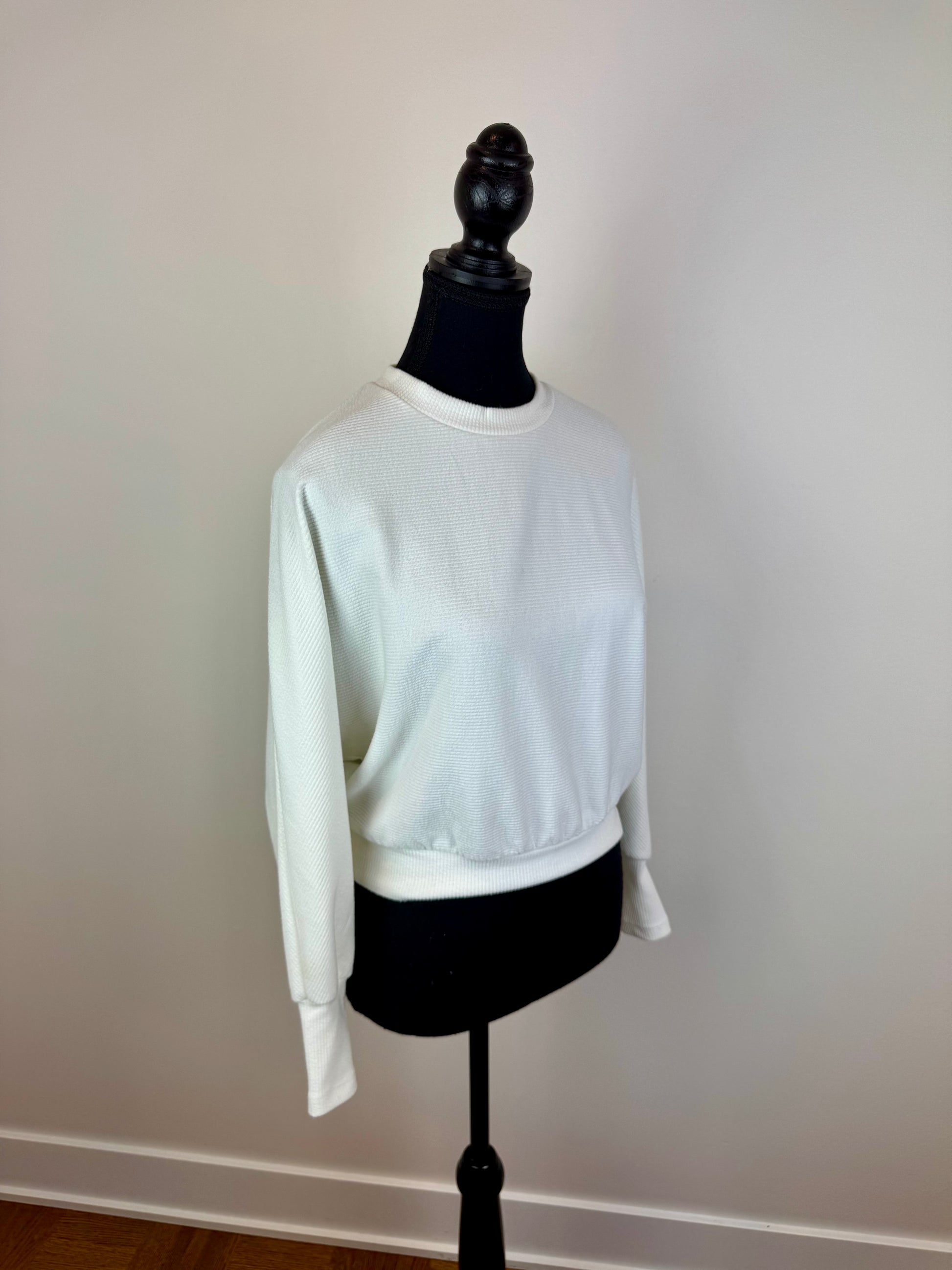 Coupe: coupe cintré courte avec bande au bas. Emmanchures descendues.